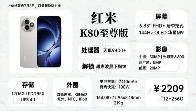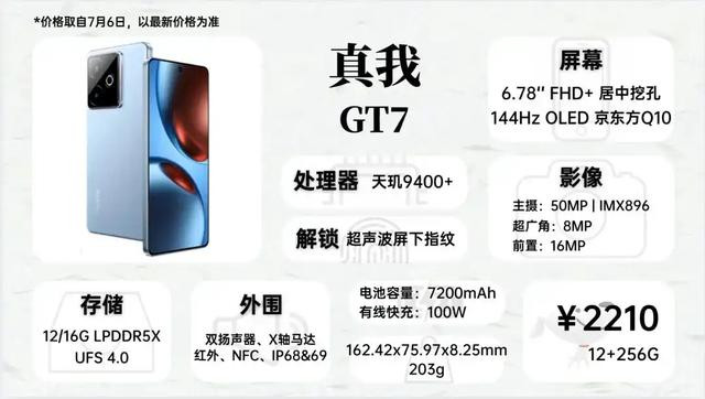 GT7涨到了2200多,该机型618期间最低有到过1989的价格,尽管如此,它还是目前价格比较低的天玑9400+机型,它采用塑料中框,质感上稍逊K80至尊一筹,但重量控制更好。