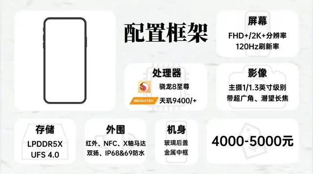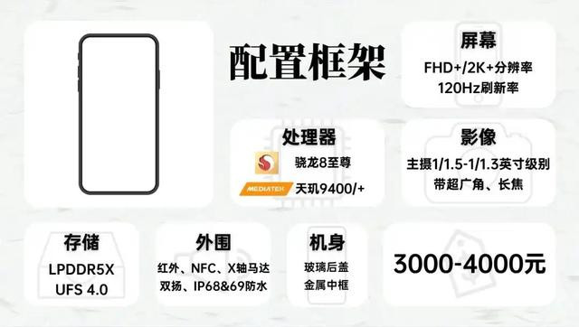 处理器性能提升一个档,骁龙8s Gen 4和天玑9400e定位都是次旗舰处理器,性能和上一代旗舰骁龙8Gen3、天玑9300+差不多,此外这个价位的机型普遍采用玻璃后盖,部分机型甚至搭载了金属中框。