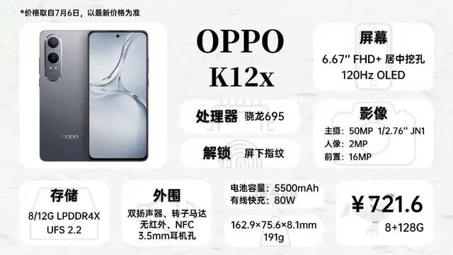 OPPO K12x带屏下指纹,80W快充,极其先进的3.5mm耳机孔,还有一块高刷OLED屏幕,买来备用或者给长辈使用非常不错,COS也足够简洁,容易上手。