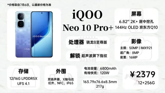 比起618的价格,iQOO Neo10Pro+本月没有涨价,更值得推荐了。对比GT7Pro竞速版,它屏幕升级到2K+分辨率,X200s同款主摄和下放的算法,拍照不错,还带超声波指纹,电池也大一些,但防水只有IP65,中框为塑料材质,质感稍逊一筹。