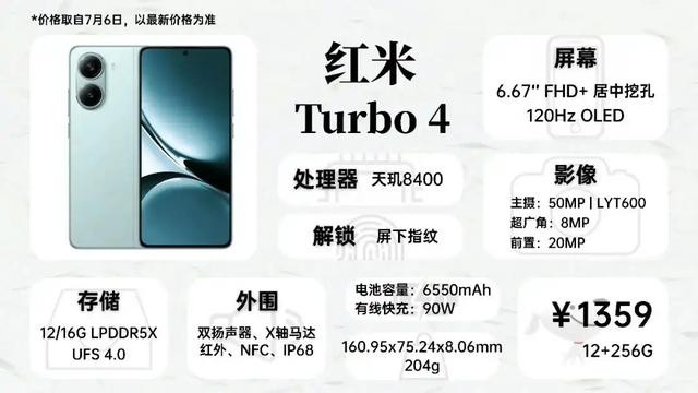红米Turbo 4对比Z9Turbo,采用玻璃机身,质感升级,同时还具备IP68防水,别的配置大体相近,也可以考虑选择。