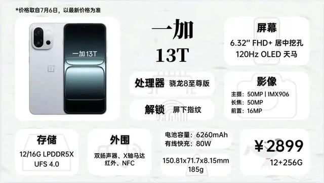 接下来推荐一款我自己很喜欢,但未必适合所有的人机型,一加13T,它是目前小屏旗舰中,电量最大的,小屏手机的续航不再是问题,不过它的阉割也非常明显,机身质感一般,主摄规格一般,直接砍掉了超广角镜头,还阉割了防水和超声波指纹。从定位来看,它还是低于像小米15、Find X8s这样的数字旗舰。