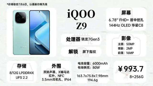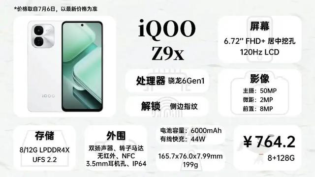 700多可以考虑iQOO的Z9x,它搭载一块LCD屏幕,是LCD党为数不多的选择,电池容量达到6000mAh,同样有3.5mm耳机孔,烂橘子系统优化得不错,也很适合给长辈使用。