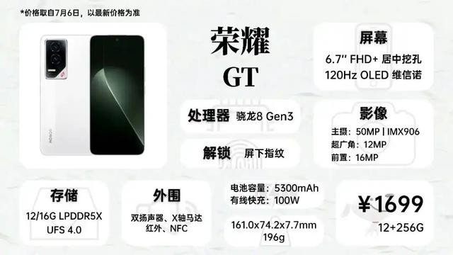 荣耀GT是少数进入我推荐清单的荣耀机型,尽管分家已久,但荣耀的MagicOS操作逻辑和华为鸿蒙系统类似,很适合老华为用户换机,这款机子电池容量比较小,没有防水配置,但胜在轻薄,主摄素质也比红米和iQOO强一个档。
