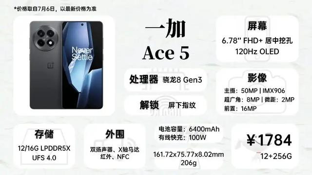 一加Ace 5对标K80,同样搭载玻璃机身和金属中框,主摄和荣耀GT一样采用IMX906,影像表现还不错,机身整体质感要比Turbo们好一些。