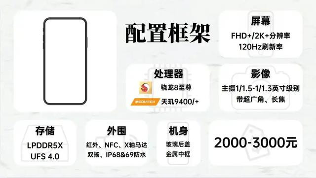 到了这个价位,就正式进入安卓旗舰的范围,2000-3000元主要是子品牌Pro旗舰的天下,来看看配置框架吧: